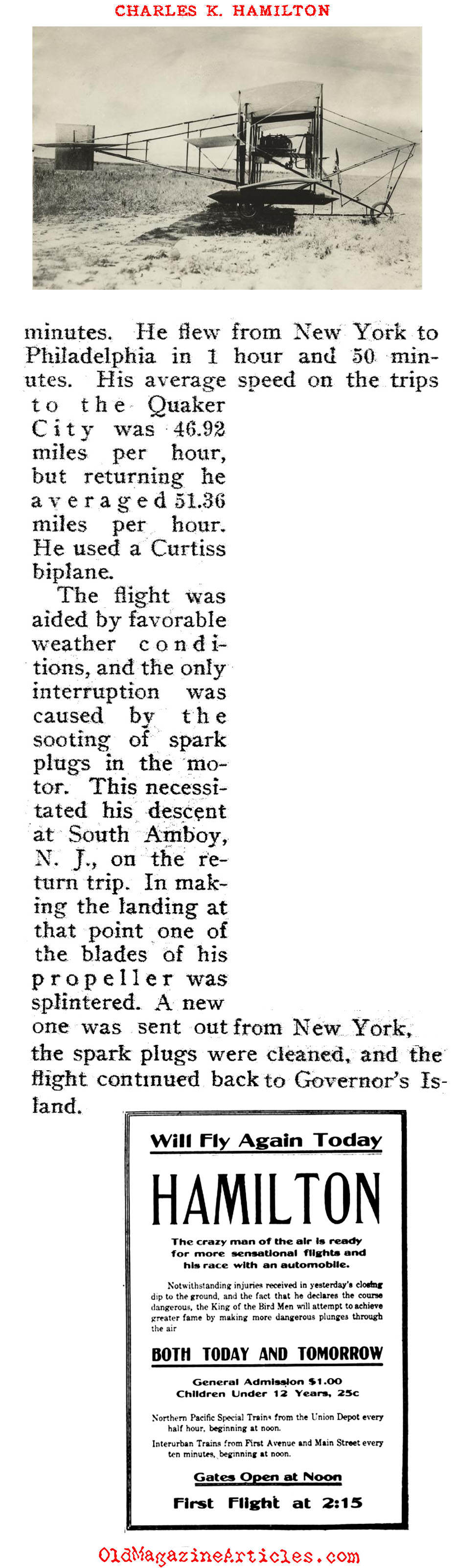 KEY WORDS: Curtis bi-plane information,Curtis bi-plane speed record,1910 Curtis Bi-Plane,Charles Hamilton Aviator 1910 round-trip flight NY to Phil. Pa.,1910 Aviation speed record between NY and Phil. Pa. in a Curtis bi-plane