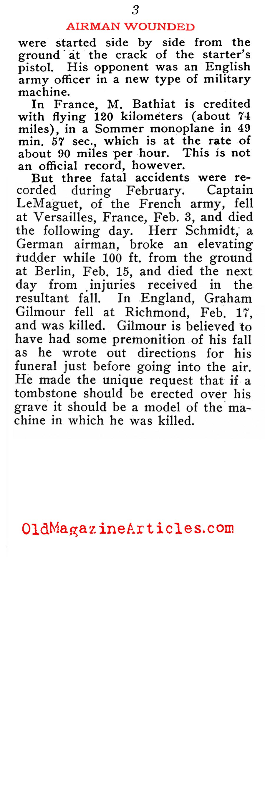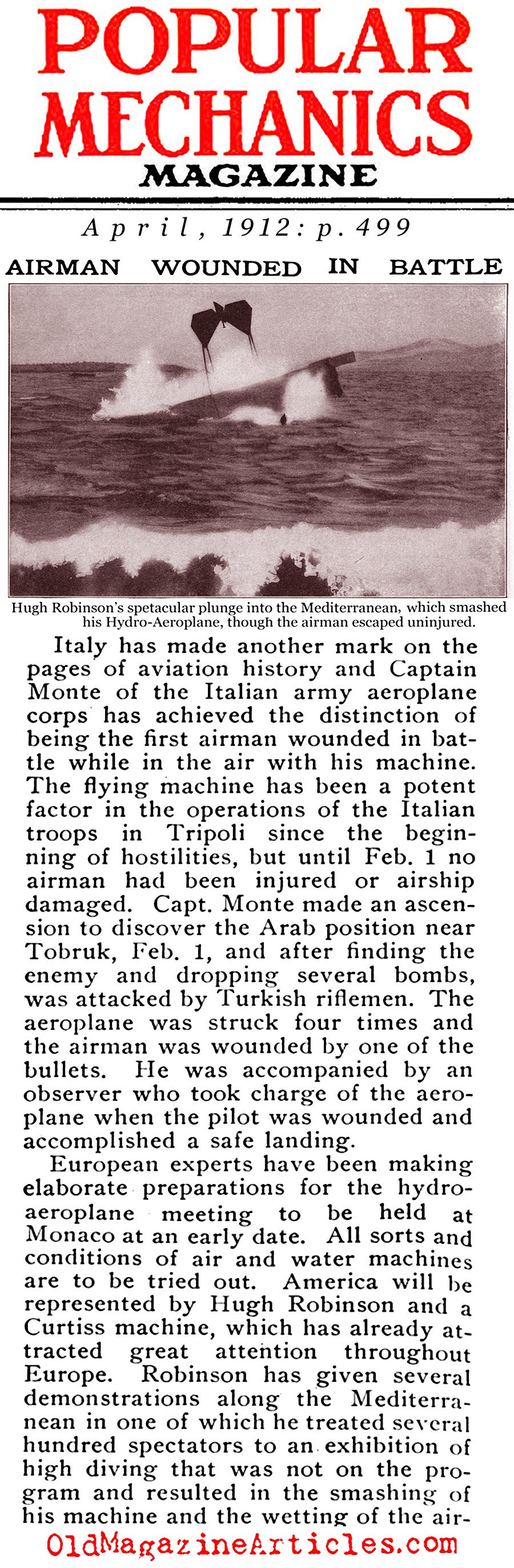 “Captain Monte of the Italian army aeroplane corps has achieved the distinction of being the first airman wounded in battle while in the air with his machine.”