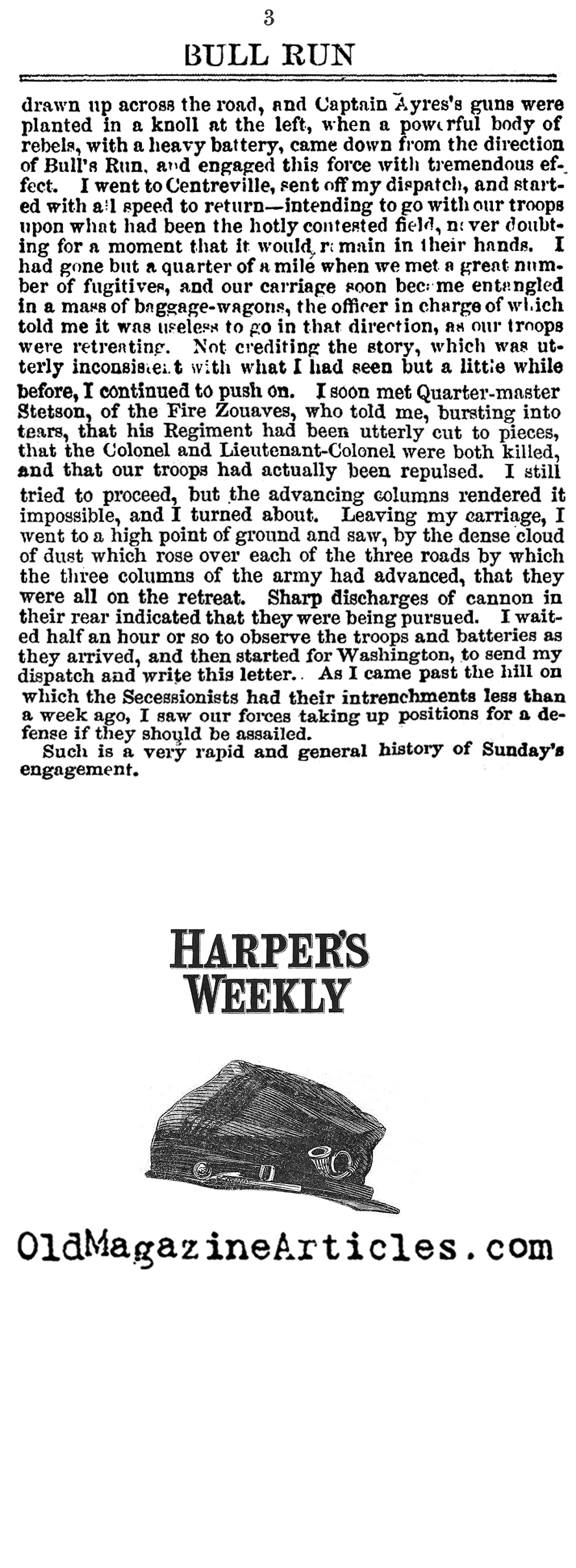 KEY WORDS: union disaster at Bull Run 1861,primary source article about the battle of bull run 1861,