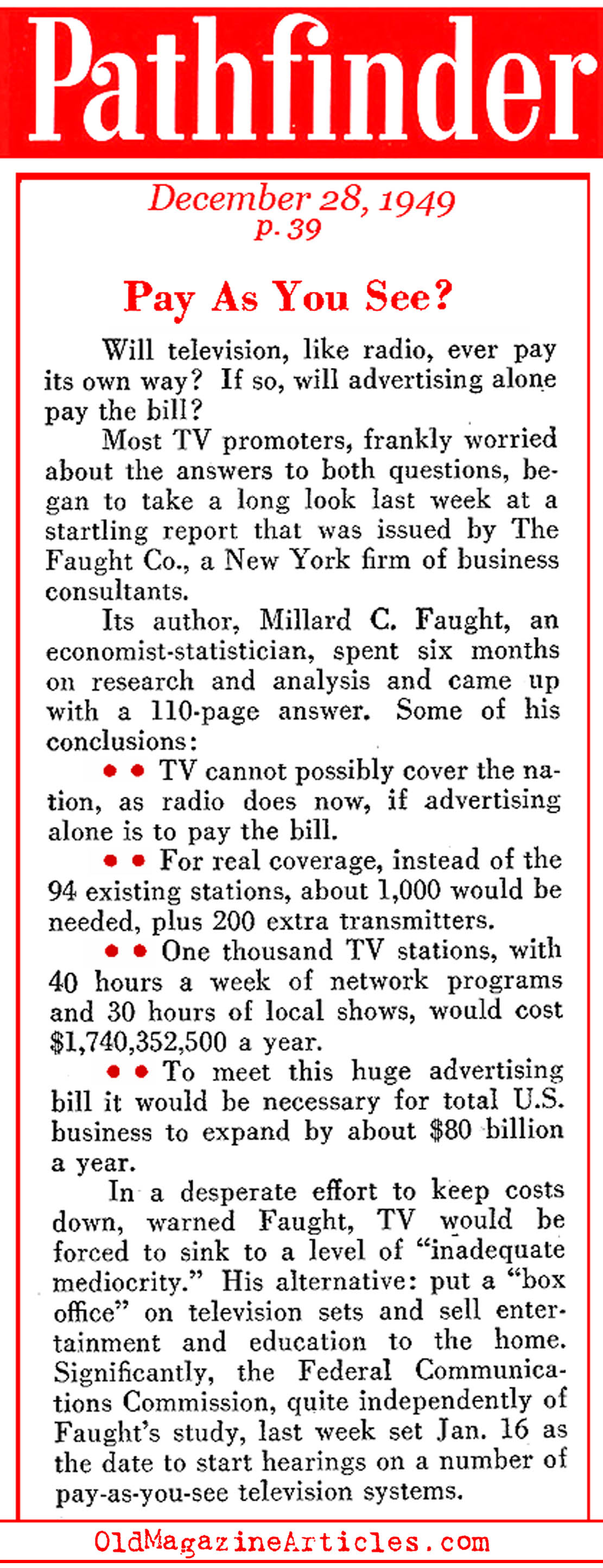 KEY WORDS: profitability of television,how TV was monetized,profits of 1950 s television business,how TV broadcasting was monetized,1940 Television business,Early Television Industry profits,Millard C Faught article,television business examined by Millard C Faught,profitability of tv broadcasting,profits of 1950 s broadcasting,1940s Television broadcasting,broadcast industry history,commercial broadcast industry profits