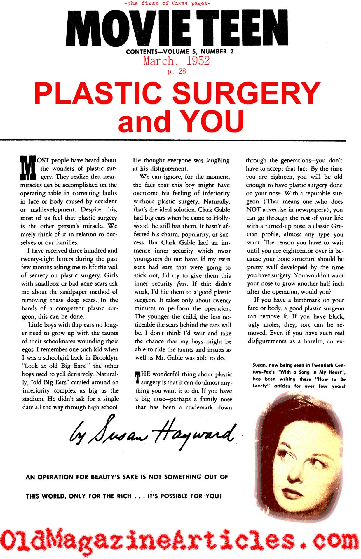 KEY WORDS: susan hayward on 1950s plastic surgery,miacles of plastic surgery by Susan Hayward,body conscious Susan Hayward
