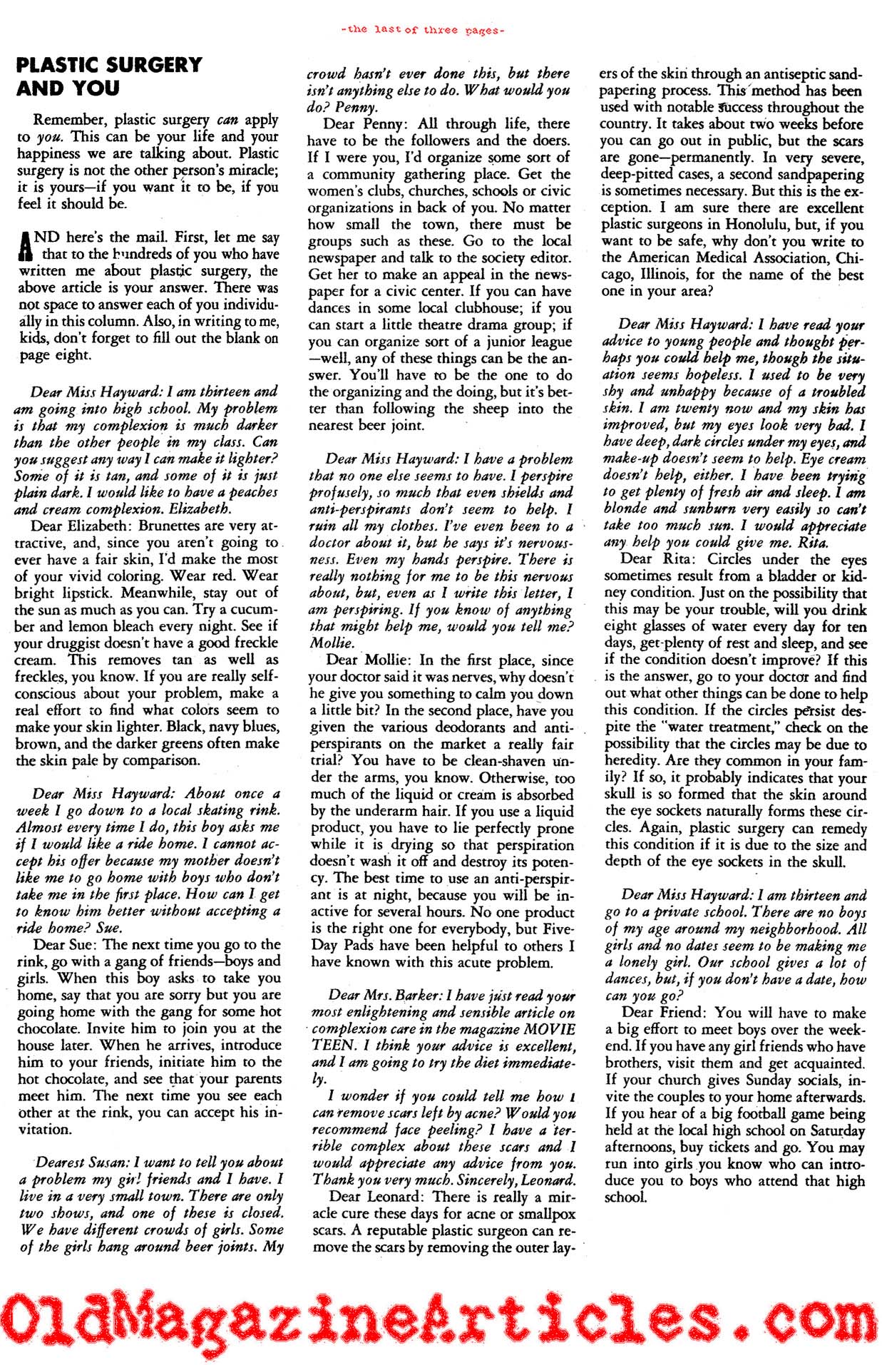 At the time this article appeared on the newsstands in 1952, there were probably fewer than 100 plastic surgeons throughout the entire United States, breast augmentation surgery was in its infancy, however advancements were being made daily as a result of the carnage generated by the Second World War. La Hayward was cautiously optimistic regarding the brave, new world of aesthetic surgery: