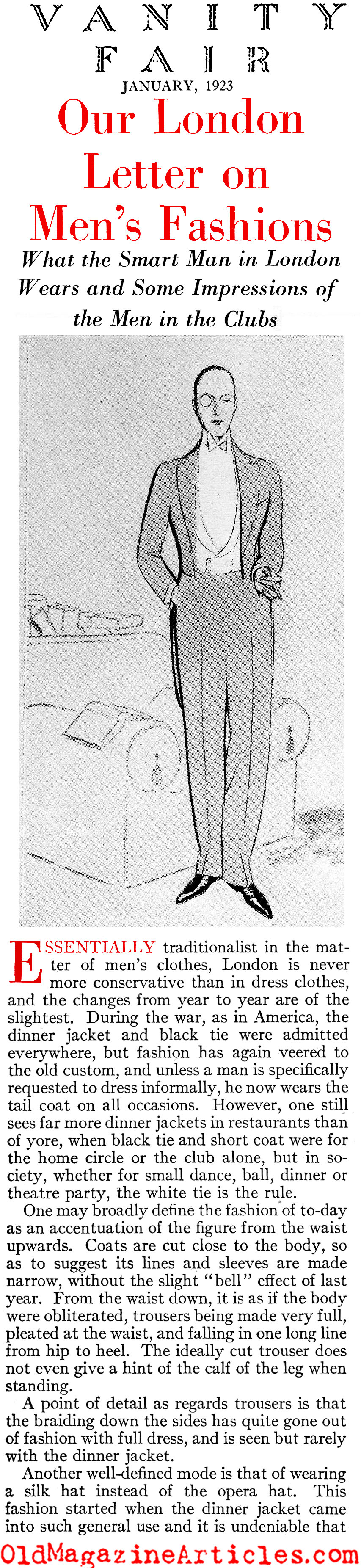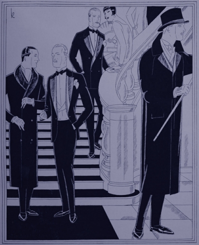 KEY WORDS: tailoring rules for men’s formalwear 1923,tuxedo rules 1923,the rise of the tuxedo 1923,white tie rules 1923,black tie rules 1923,men’s formal attire in the early Twenties,conservative than in dress in the 1920s