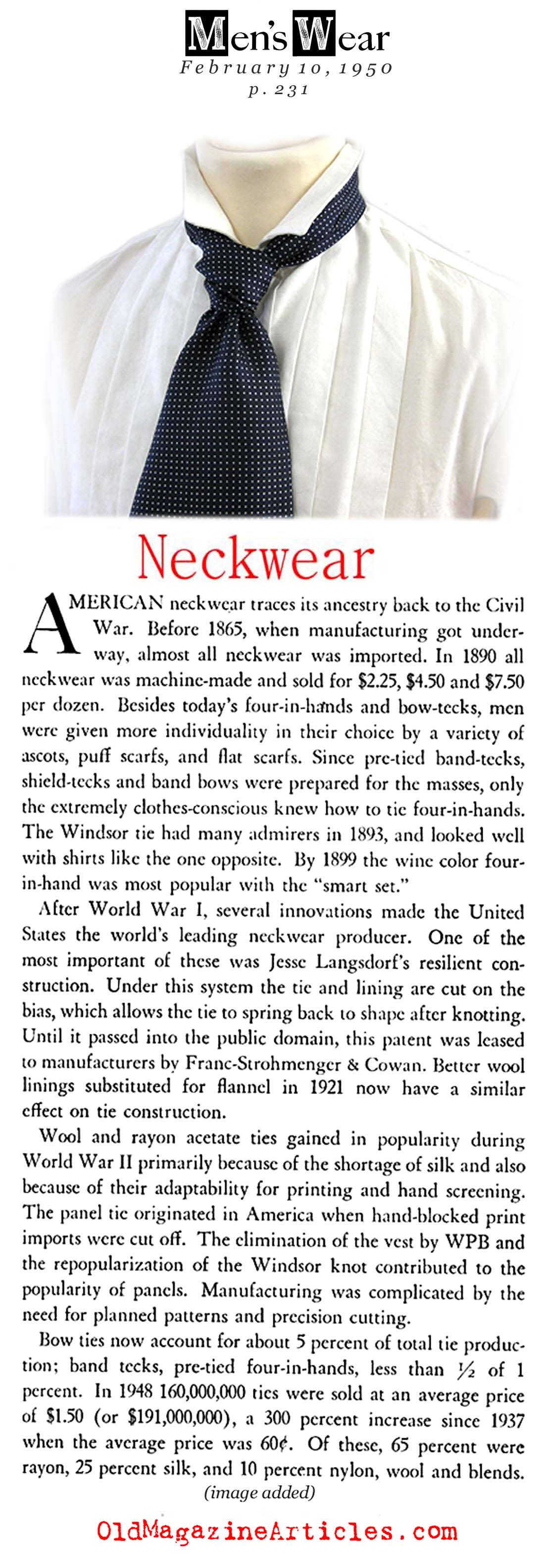 Read History of the Necktie in America  (Men’s Wear, 1950) for Free