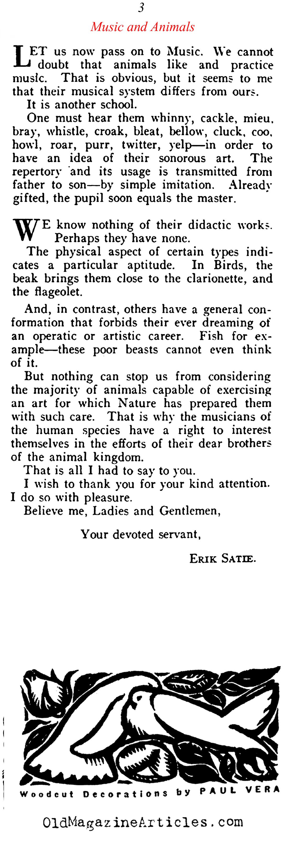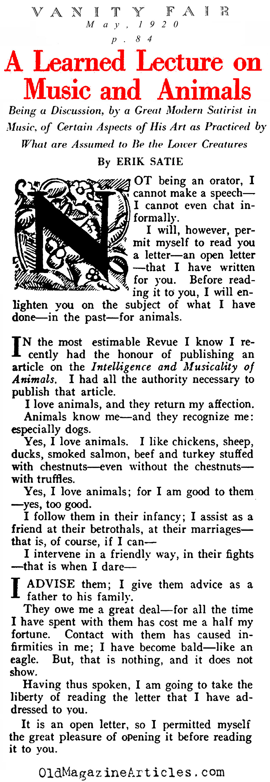 KEY WORDS: Music Essay Composed by Eric Satie,Eric Satie pdf,Vanity Fair Magazine Article Written By French Composer Eric Satie 1922,Eric Satie article,EricSatiearticle,Eric Satie Magazine Article Concerning Music Among Animals 1922,French Modern Composer Eric Satie Magazine Article Online,1922 magazine music,French Modern Composer Eric Satie Magazine Article On line