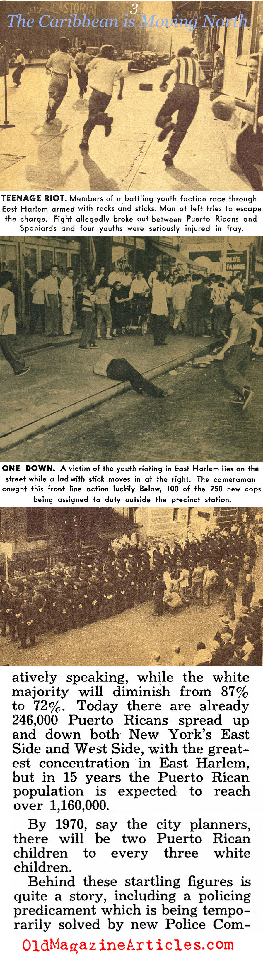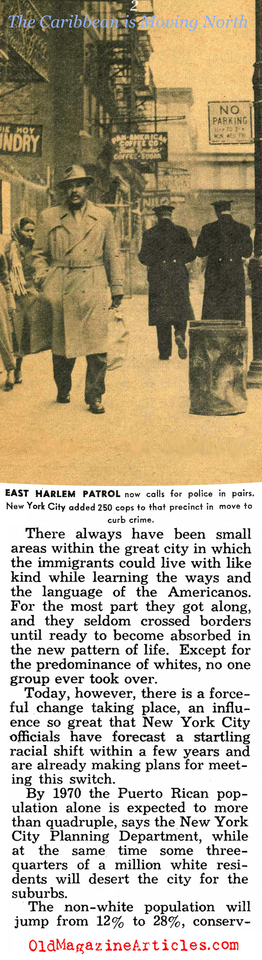 “By 1970 the Puerto Rican population alone is expected to more than quadruple, says the New York City Planning Department, while at the same time some three quarters of a million white residents will desert the city for the suburbs.”
