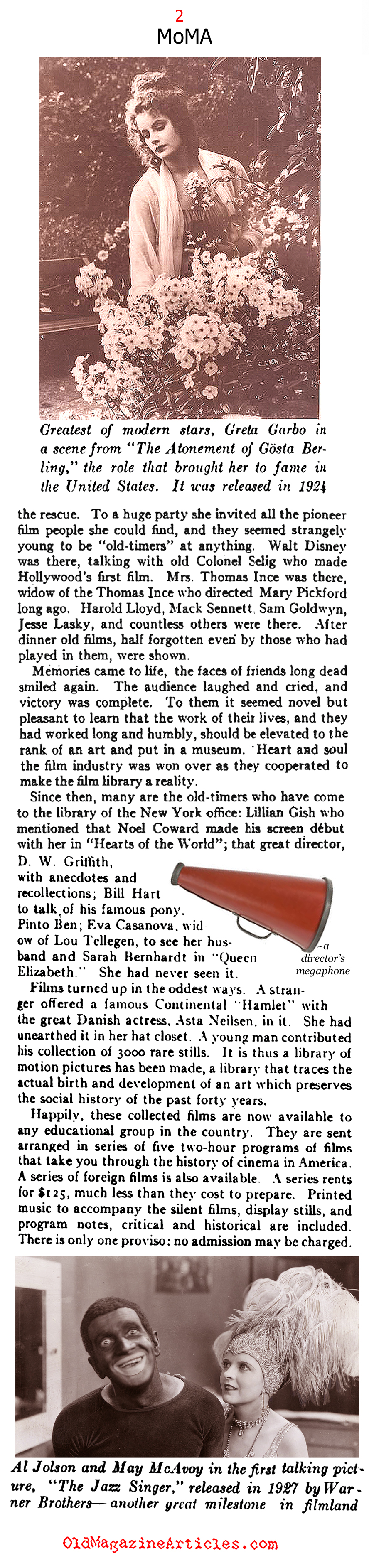 The article makes reference to all the Hollywood silent film pioneers who also played a part in helping the film library.