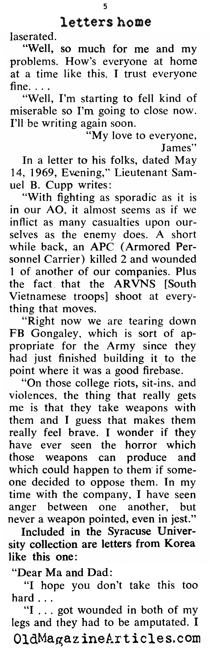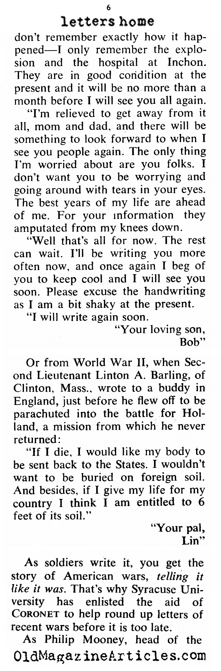 The Vietnam War Letters HomeFrom Vietnam • Coronet Magazine, 1970 • More article about the Vietnam War can be found here…