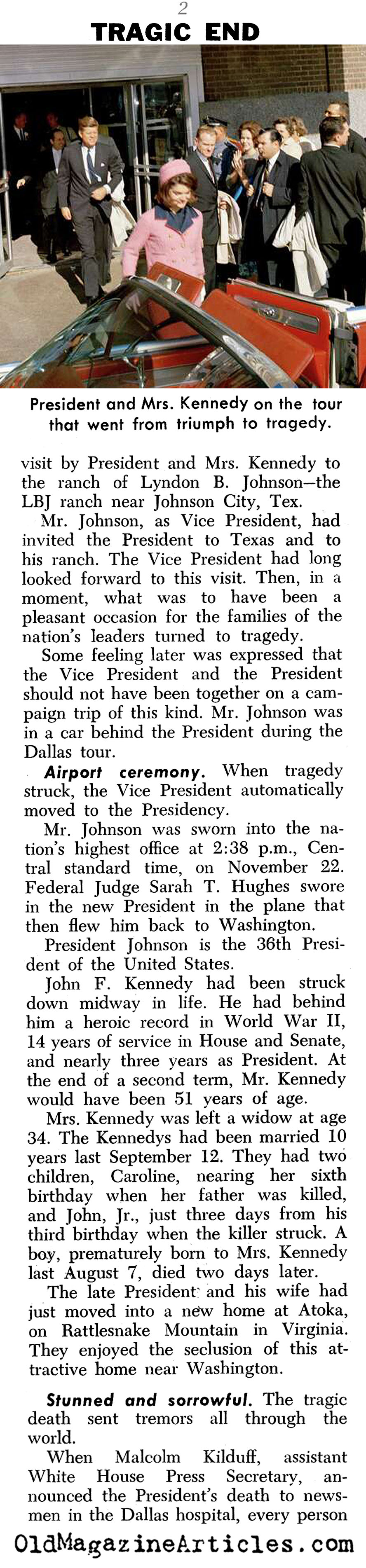 KEY WORDS: 1963 primary source article on the JFK murder,malcom kilduff assistant white house press secretary 1963,federal judge sarah t hughes November 22 1963,general reaction to kennedy assassination 1963,white house press corps to kennedy assassination 1963,