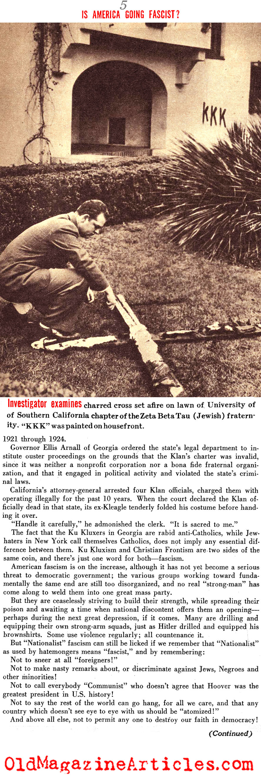 “American Fascism is on the increase, although it has not yet become a serious threat to democratic government; the various groups working toward fundamentally the same end are still too disorganized, and no real ‘strong man’ has come along to weld them into one great mass party.”