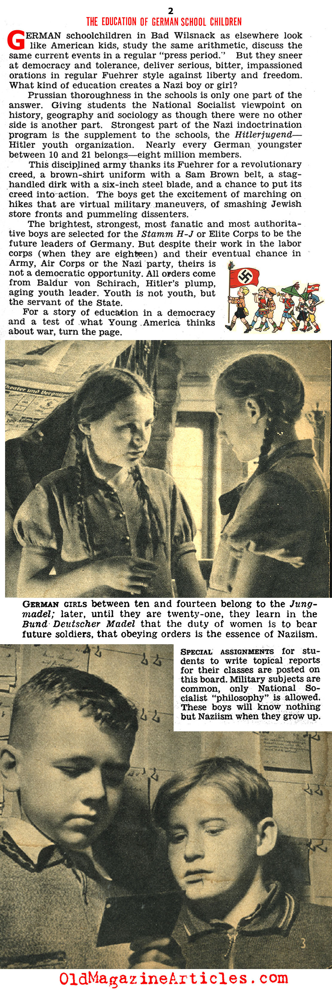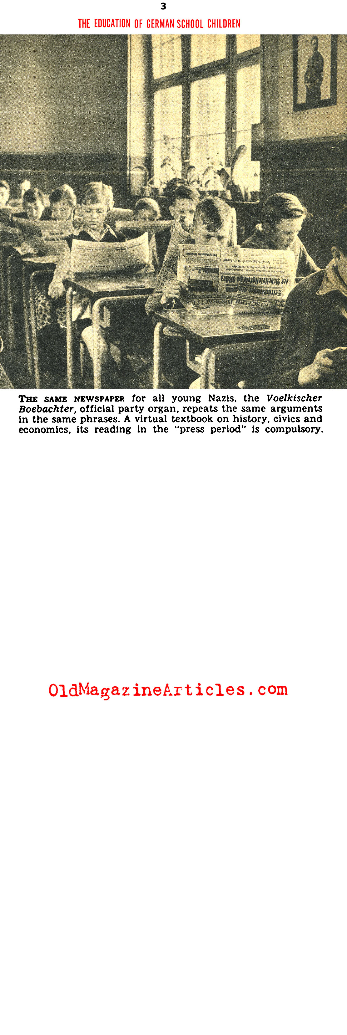 When this article appeared on the newsstands of North America Hitler had been in power for seven years and the Nazi school system was firmly in place and ripe for observation: