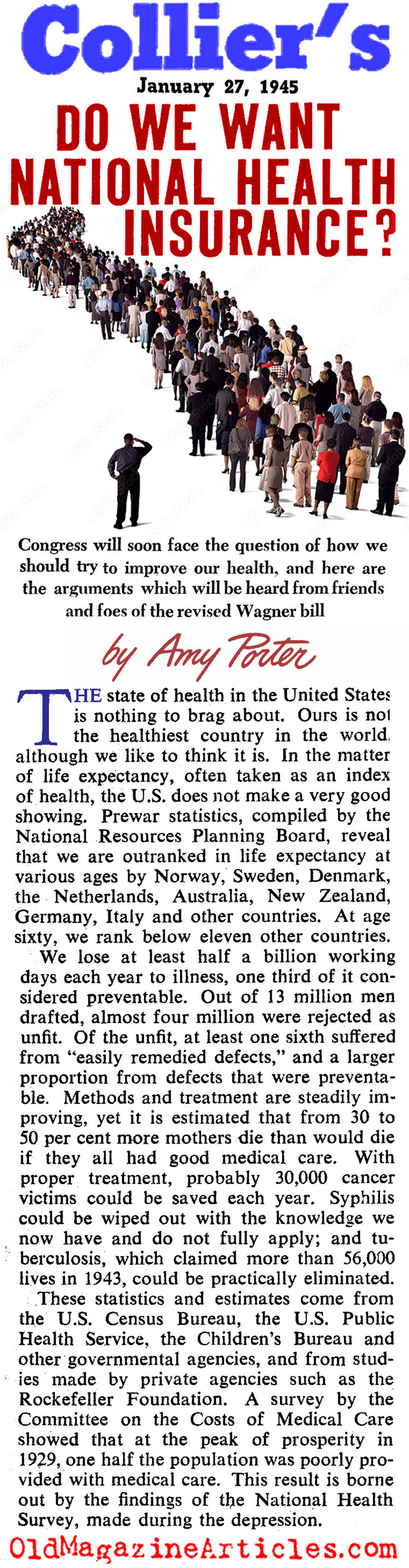 Writing in 1945, Journalist Amy Porter made the point that the general health of Americans was, on the whole, not good and that some form of government intervention should be welcomed: