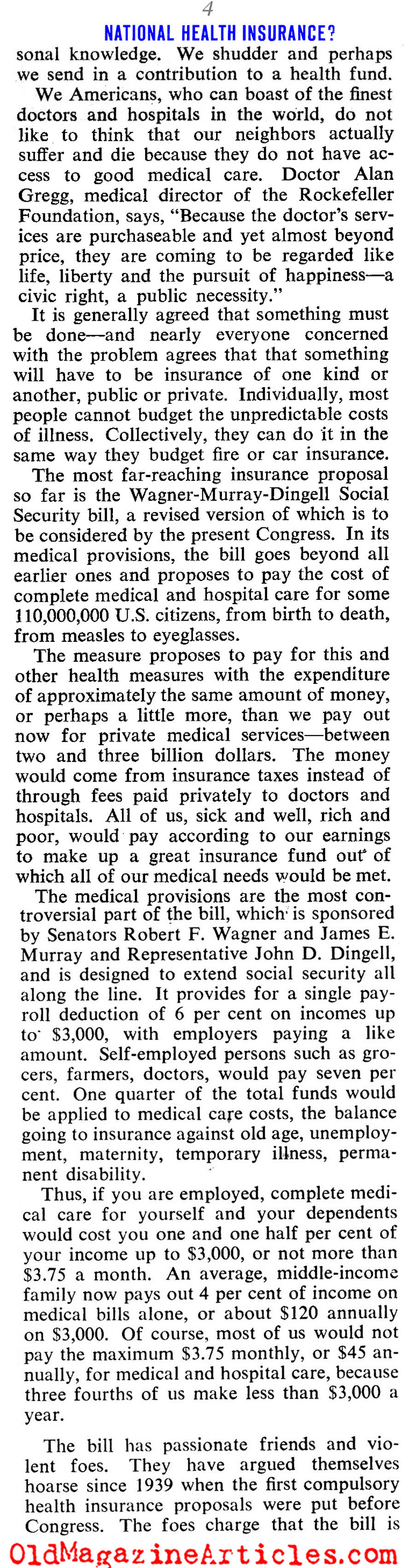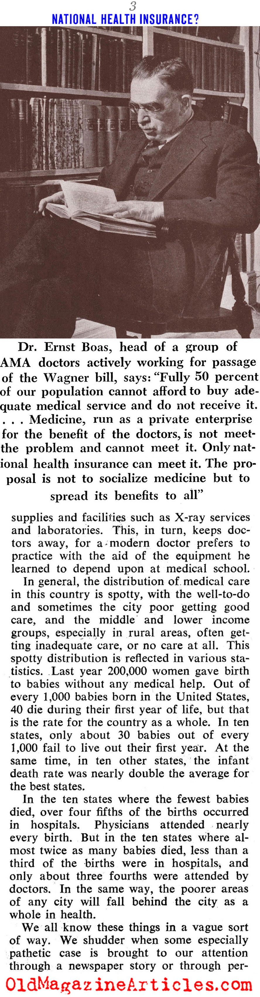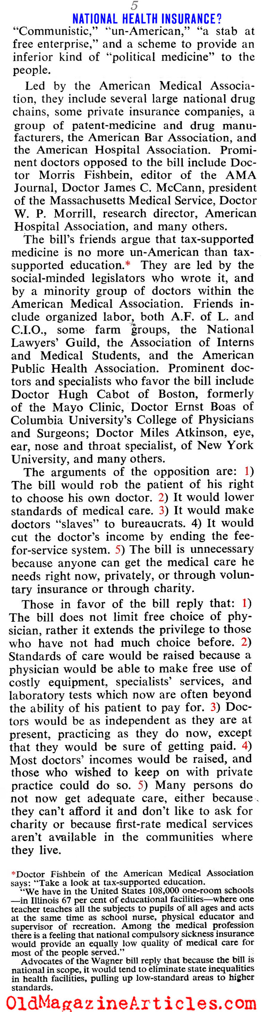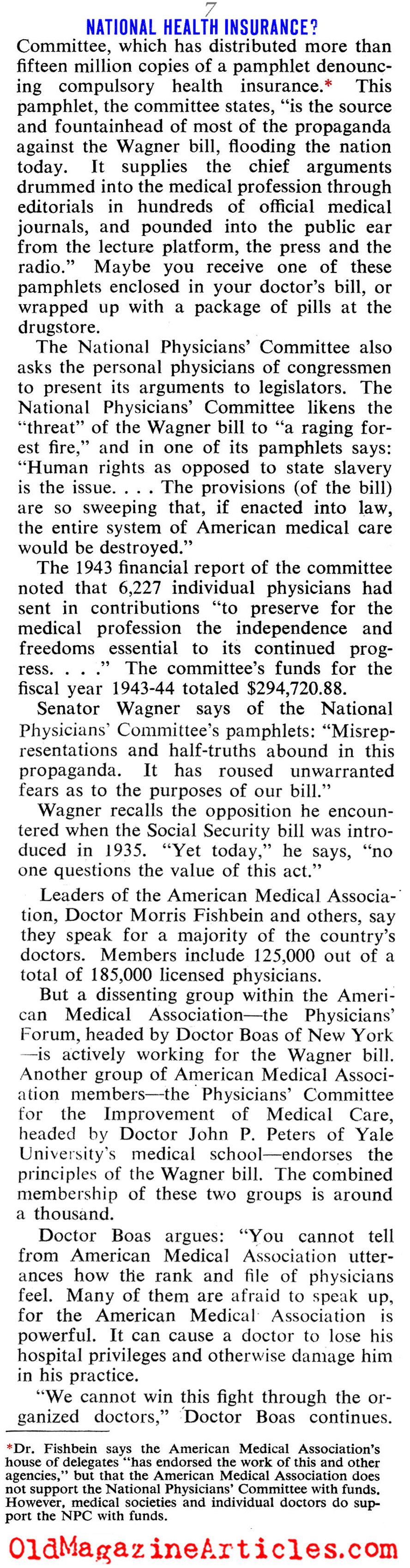KEY WORDS: Dr Ernst Boas spoke in support of Wagner Bill 1945,Dr Morris Fishbein AMA spokesman shreds Wagner Bill 1945,american medical association opposition to the Wagner Bill 1945,Wagner Bill government-sponsored healthcare insurance 1945,government-sponsored healthcare debate 1945,Amy Porter American journalist Collier’s Magazine 1945,adequate medical care unaffordable in 1945 America,1945 National Opinion Research Center poll concerning government-sponsored healthcare,multiple surveys concerning public healthcare 1945,Opinion Research Corporation poll regarding US government-sponsored healthcare 1945,Gallup poll on socialized medicine 1945,Clifornia Medical Association on socialized medicine 1945,Dr Ray Lyman Wilbur Committee on Costs of Medical Care 1929,Dr Ernst Boas director of National Physicians Forum 1945,Dr Ernst Boas AMA member 1945,Dr John P Peters Yale University Medical School 1945