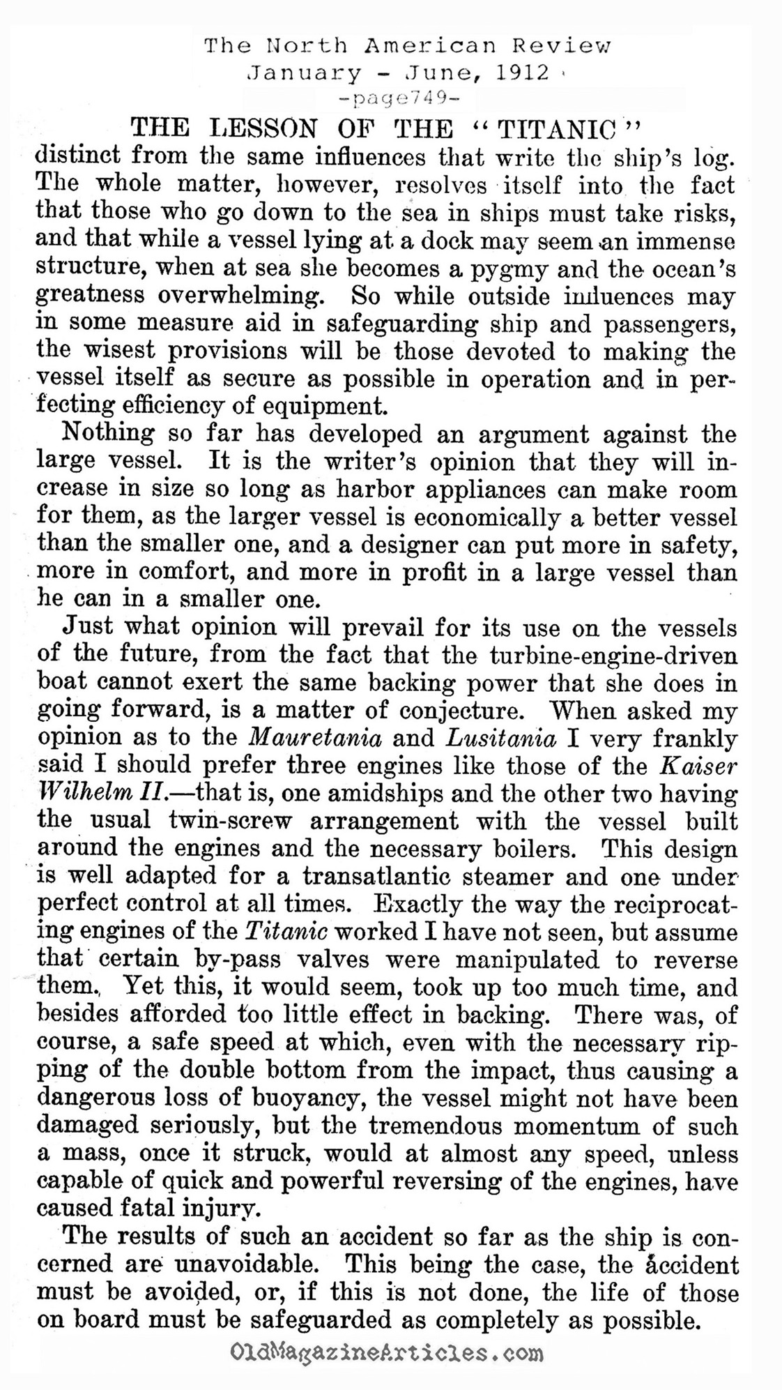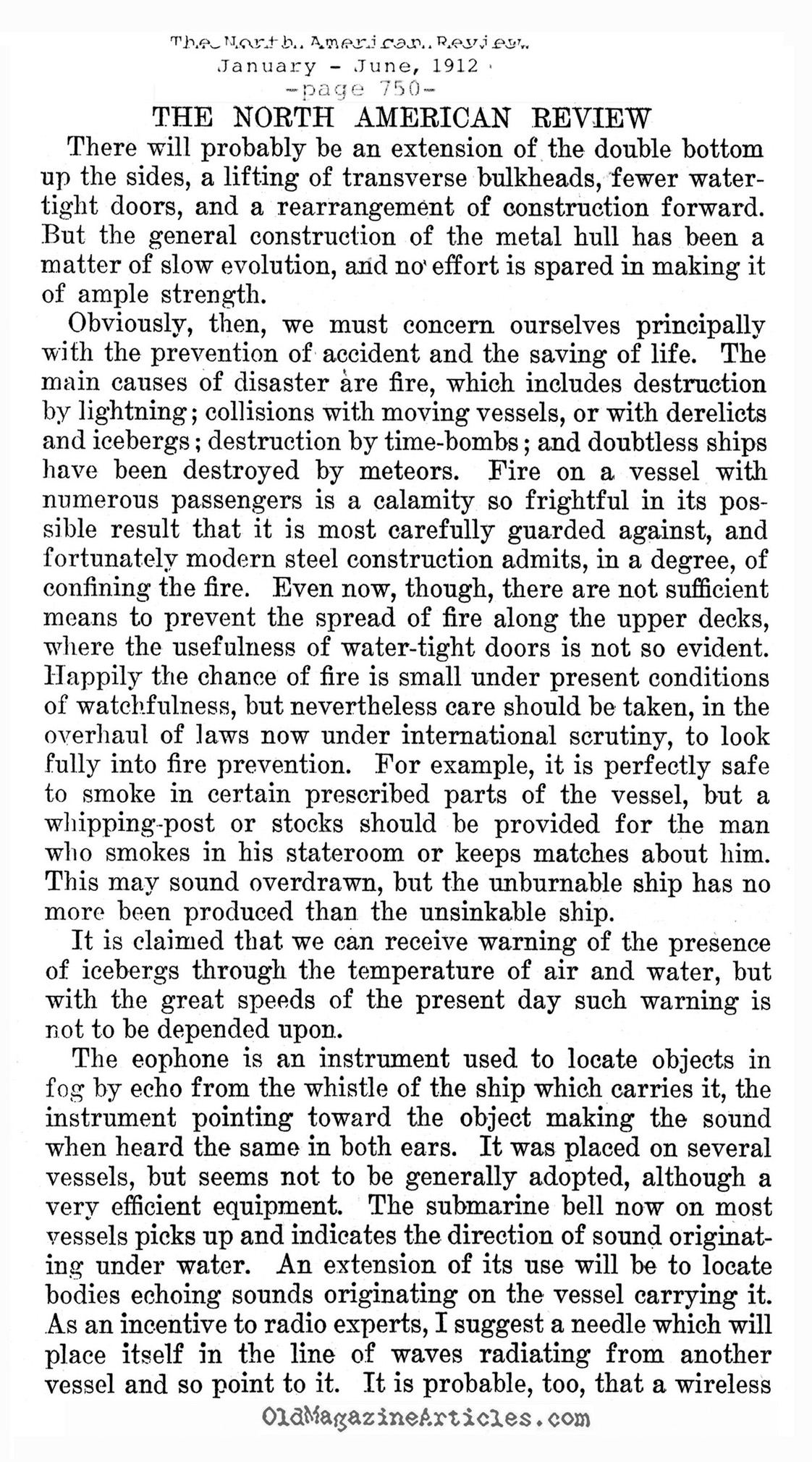KEYWORDS: WHITE STAR LINE ignorance of Naval technology,Thomas Andrews Architect of TITANIC,1912 naval technology and the TITANIC sinking,1912 naval architecture article,old magazine article about naval architecture,TITANIC design flaws,faults in the TITANIC design
