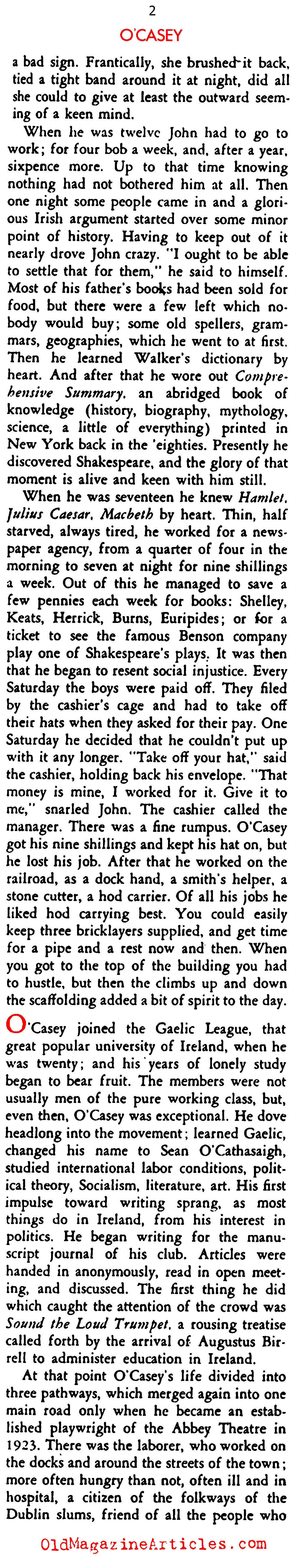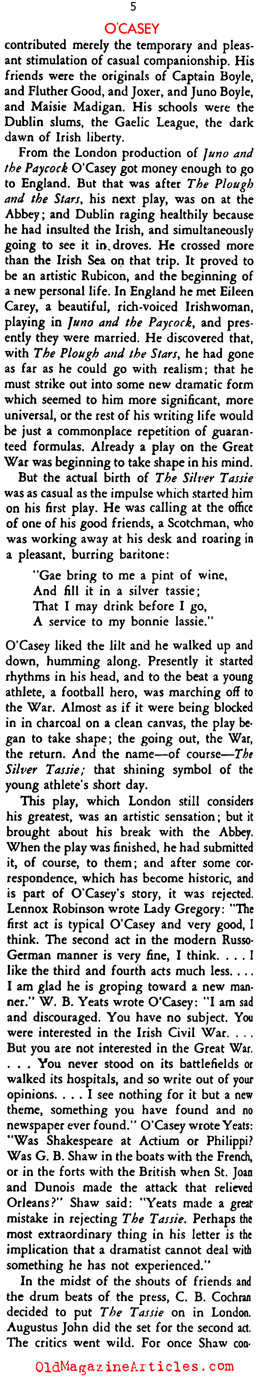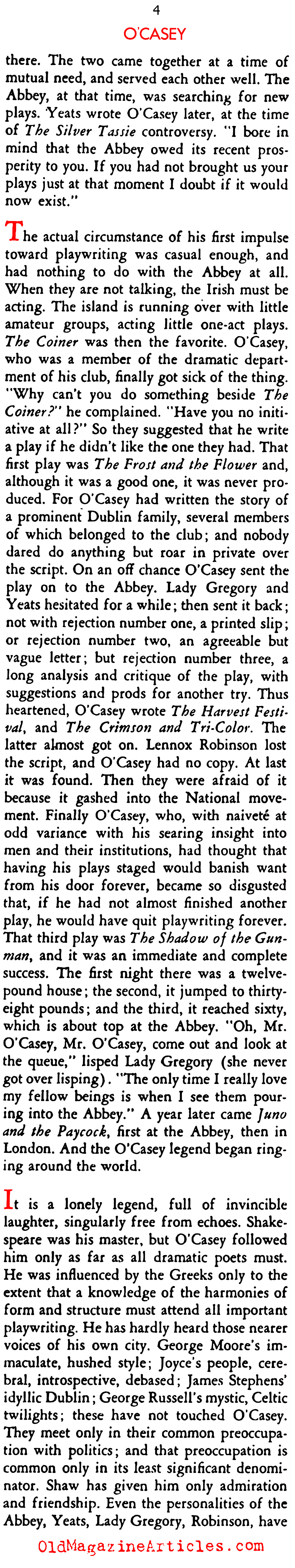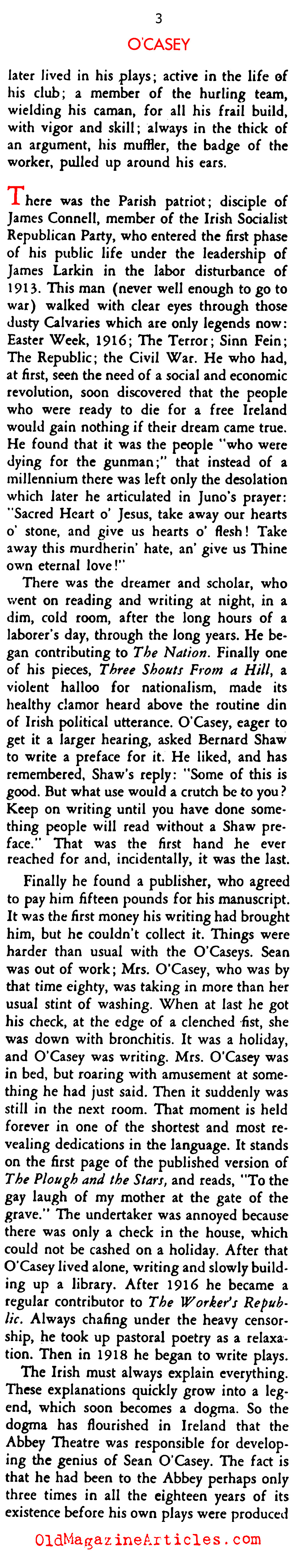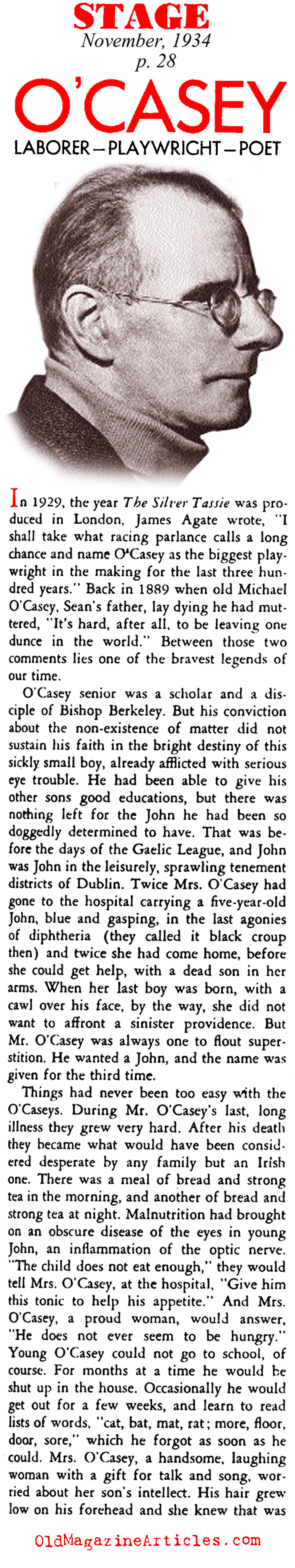 Writing for the November, 1934 issue of STAGE MAGAZINE, drama critic Ruth Woodbury Sedgwick interviewed Irish playwright Seán O’Casey
