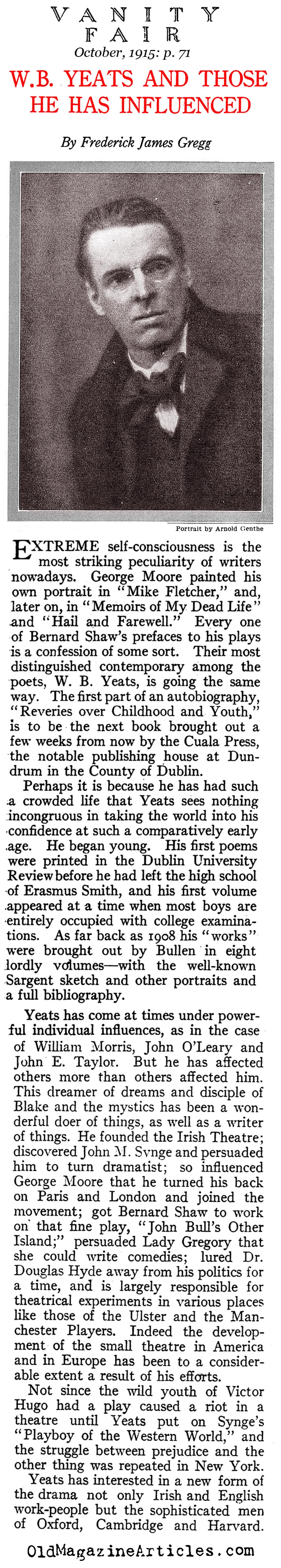 KEY WORDS: Yeats Book Review, Irish Theatre 1915,Twentieth Century English Writer,Twentieth Century Irish Writer,Vanity Fair Book Review,WB Yeats Article,Old Magazine Articles About WB Yeates,WB Yeats Magazine Interview,WB Yeats Magazine Profile