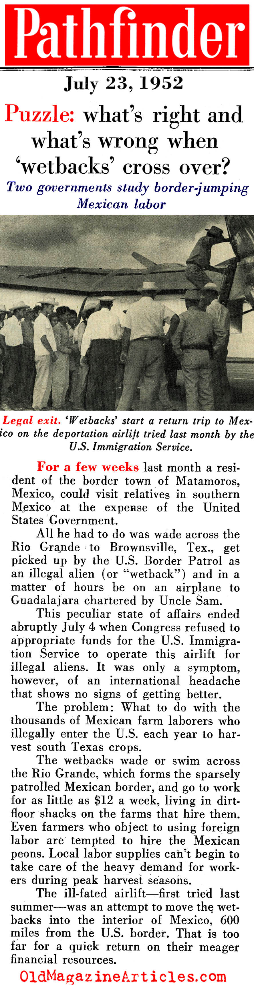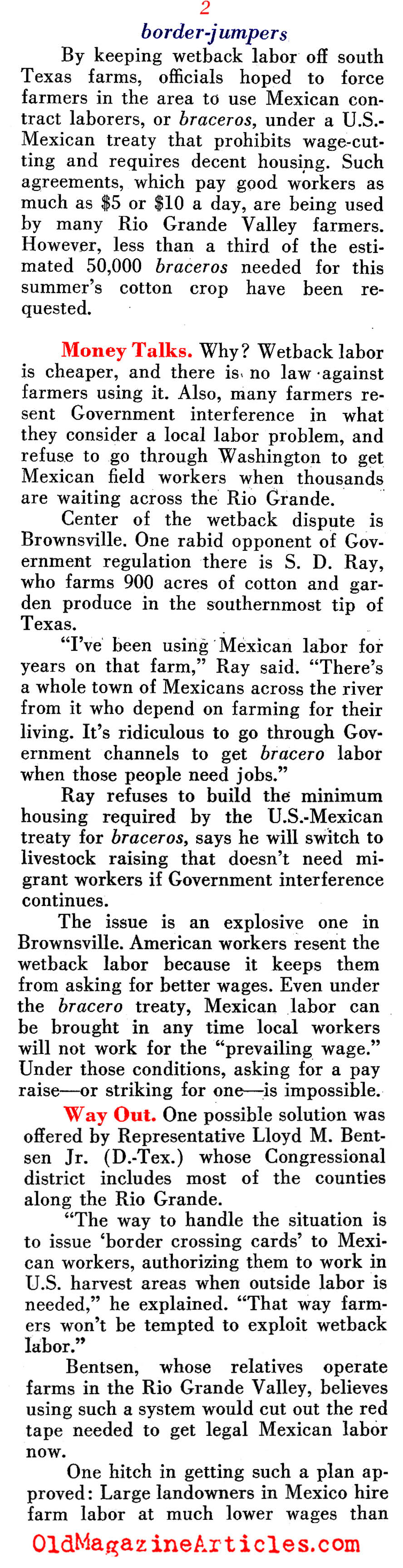 “What to do with the thousands of Mexican farm laborers who illegally enter the U.S. each year to harvest South Texas crops.”