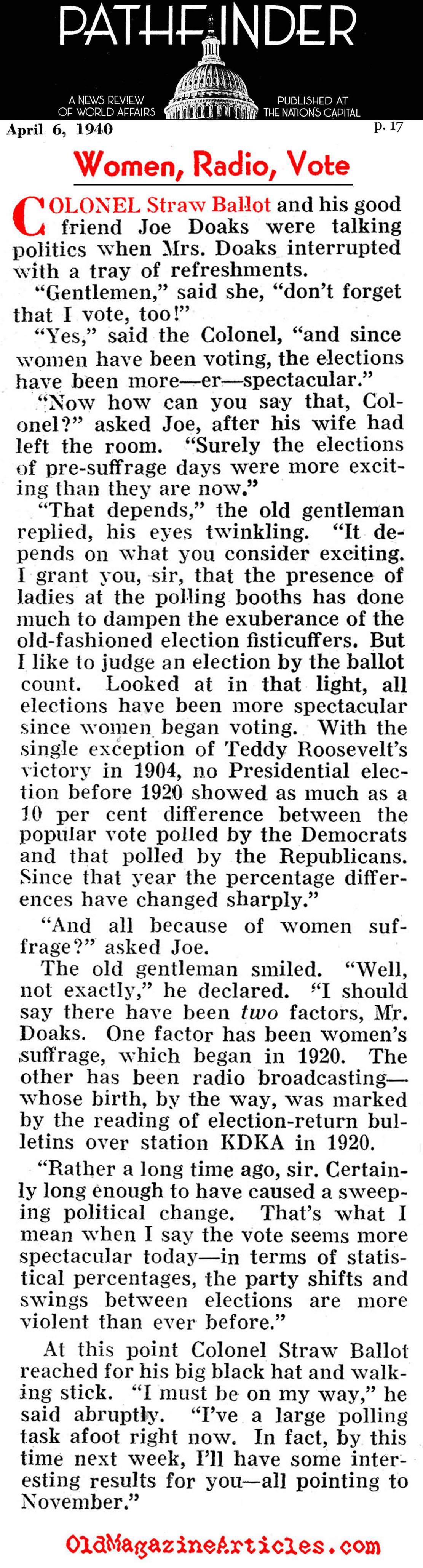The above also appeared in the April 6, 1940 issue of PATHFINDER MAGAZINE (p. 17)