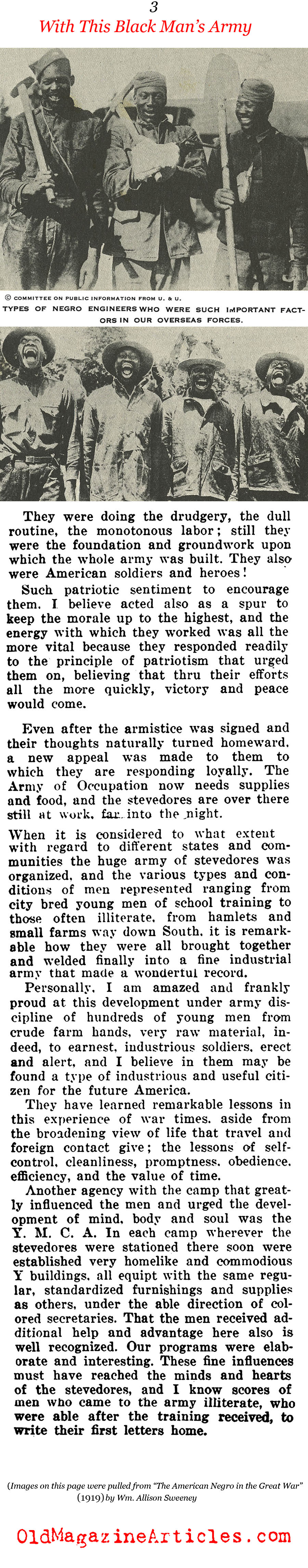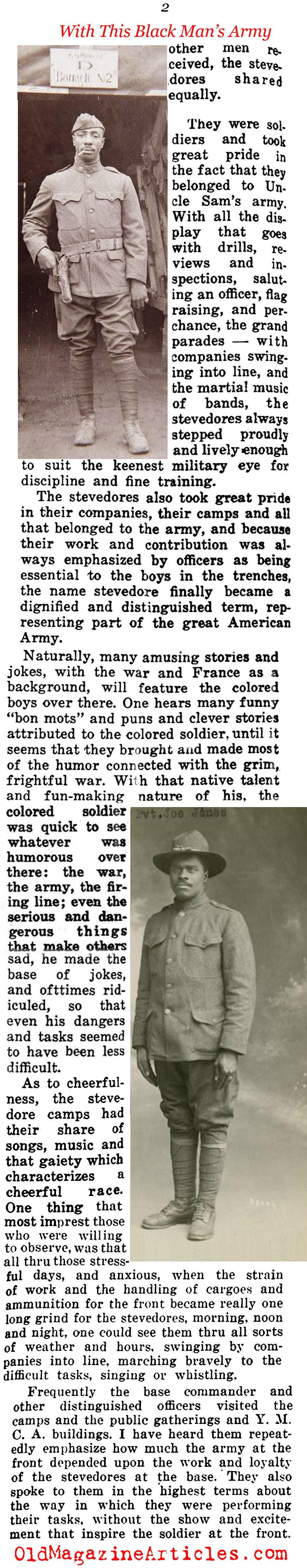 KEY WORDS: African-Americans During WW1,Stevedores in France,AEF Depot St Nazaire France,African-American Stevedore Magazine Article 1919,African-American Experience 1917 – 1919,Black Doughboys in Paris 1918, Franco-American relationship,African-American Unit During WW I,African American WW 1 History Magazine Article,