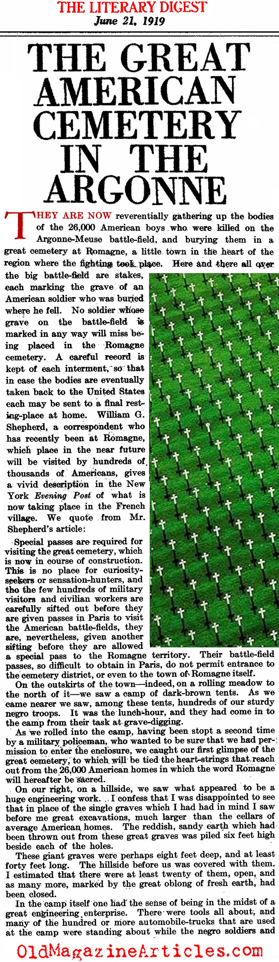 KEY WORDS: American World War One Cemeteries,American WW I Cemeteries,Meuse-Argonne Cemetery Romagne France,American Battle Monuments Commission,American Army in WW I,American Army in WW 1,Post-World War One Battlefields,Post-World War One Battlefield Tours,American Army in WW1,US Military Cemeteries in Europe,World War One Cemeteries,Doughboy Cemeteries,Post-World War One American Cemeteries,1919 Magazine Article Concerning American Cemetery in France,1919 Magazine Article Concerning Meuse-Argonne Cemetery in Romagne France