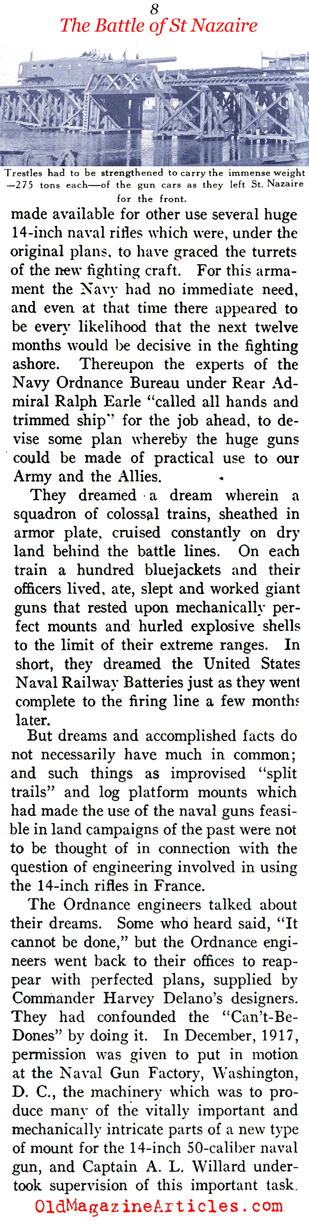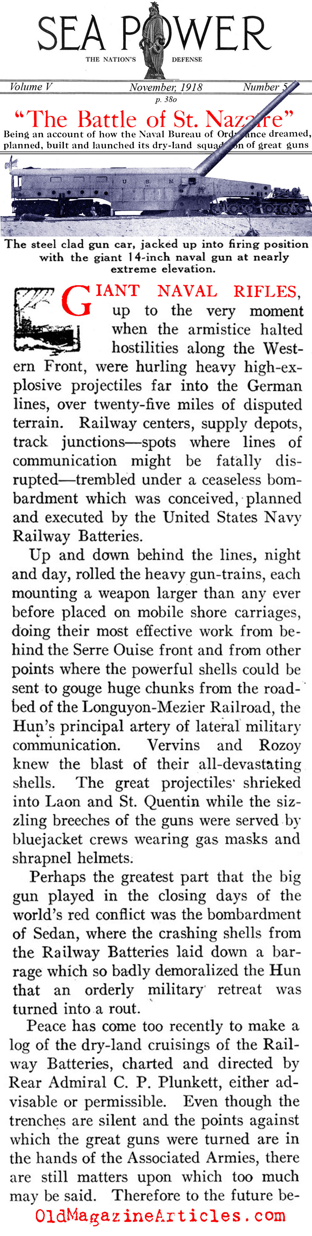 KEY WORDS: Shore-Based Naval Artillery in ww1 France,deployment of US Navy Railway Batteries in WW1 France,rear admiral CP Plunkett ww1 naval rail artillery,admiral Ralph Earle during ww1,rear admiral Ralph Earle US Navy Ordnance Bureau 1917-1918,US Navy Ordnance Engineer Commander Harvey Delano WW1 US Navy Railway Artillery,US Navy Railway Artillery Reserve crews serving in ww1 France,US Navy Department of Ordnance in France 1918,design and construction of naval rail artillery during WW1,ww1 artillery article by Kendrick Scofield 1918,naval gun factory Washington DC 1918,US Navy Captain A.L. Willard at the naval gun factory Washington DC,US Navy Captain A.L. Willard rail artillery during ww1,Navy department of ordnance expertise during WW1,14 inch 50-caliber naval guns during WW1