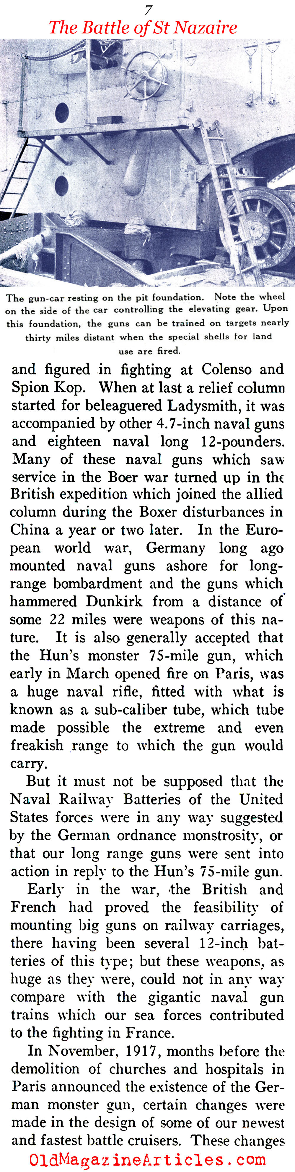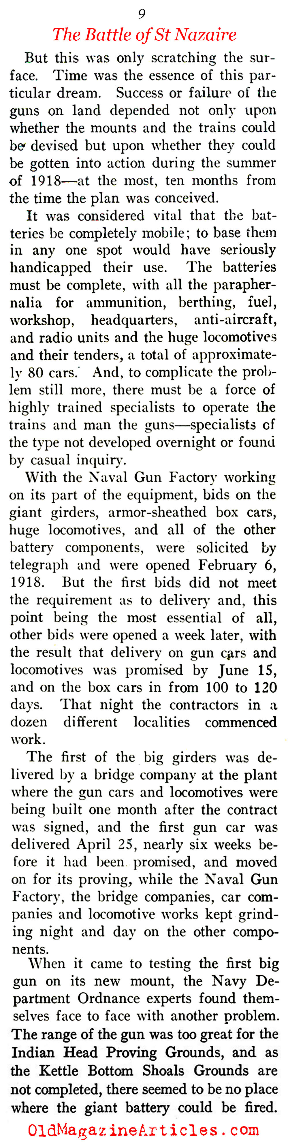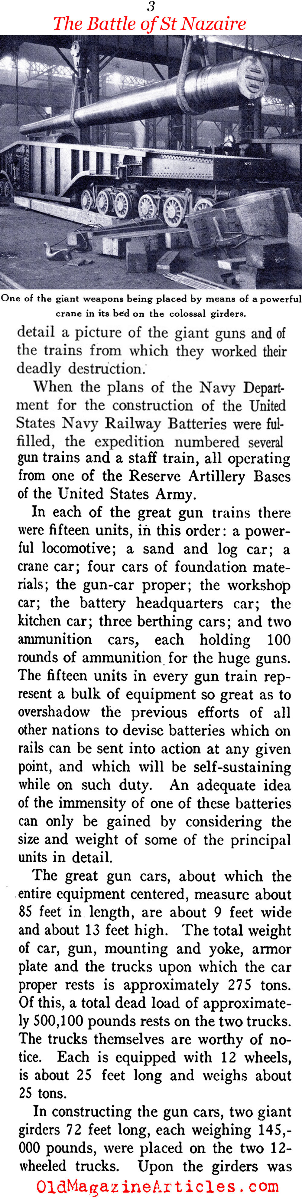 Illustrated with six photographs, the attached article is one of the very first pieces of journalism to document the planning, construction, testing and deployment of the rail-based artillery batteries that were manned by the U.S. Navy in W.W. I France.