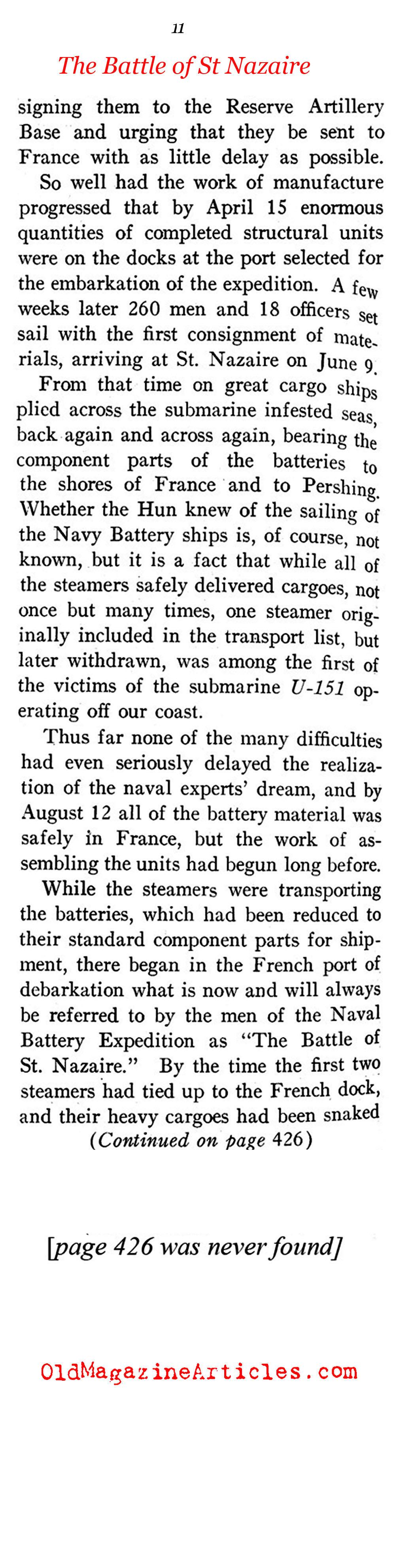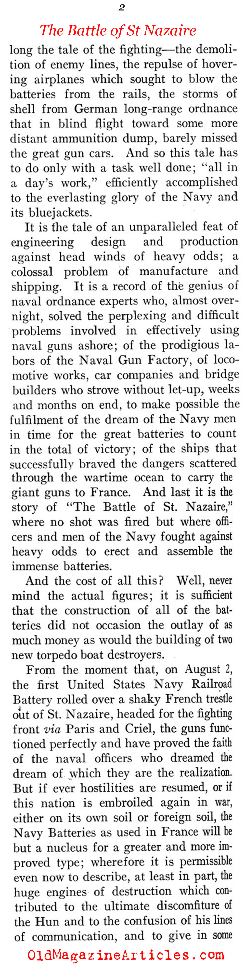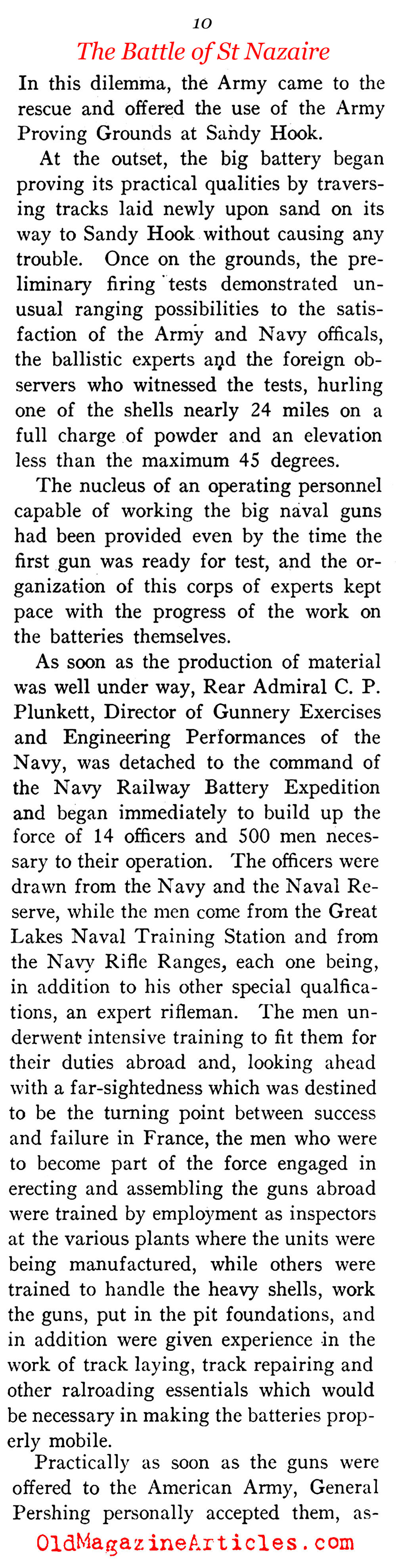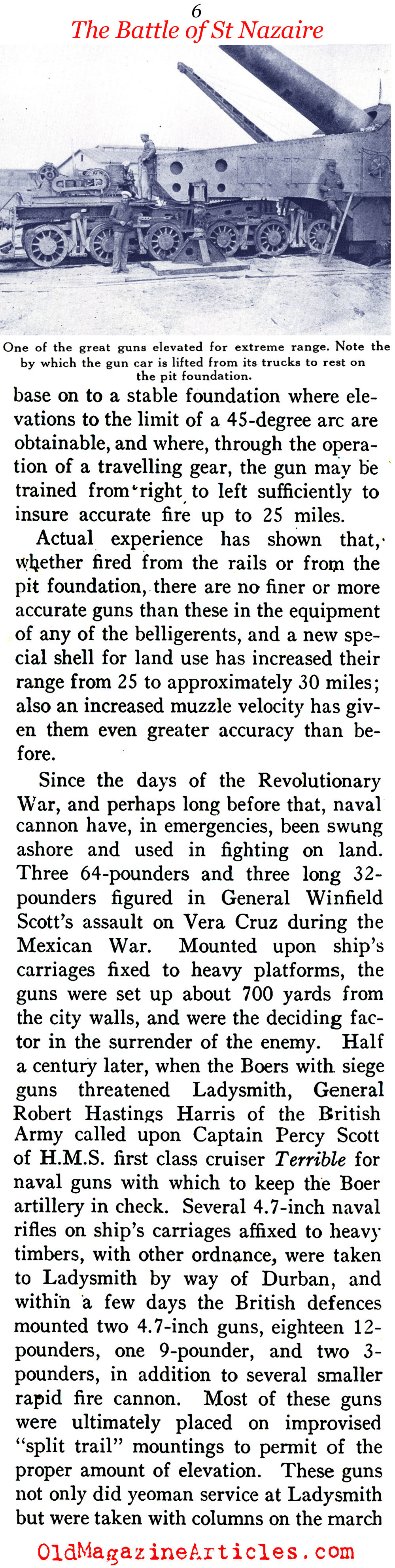 Illustrated with six photographs, the attached article is one of the very first pieces of journalism to document the planning, construction, testing and deployment of the rail-based artillery batteries that were manned by the U.S. Navy in W.W. I France.