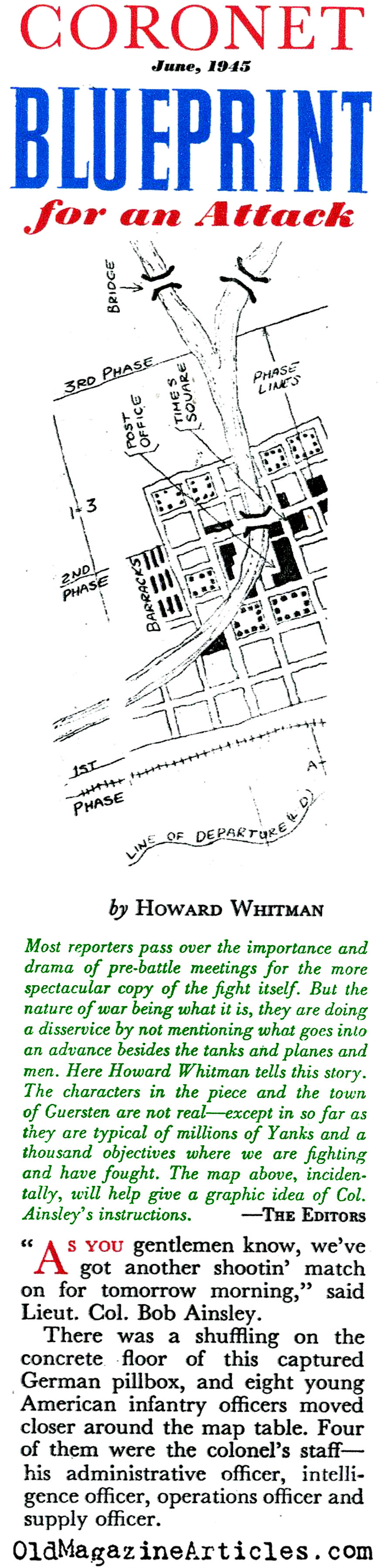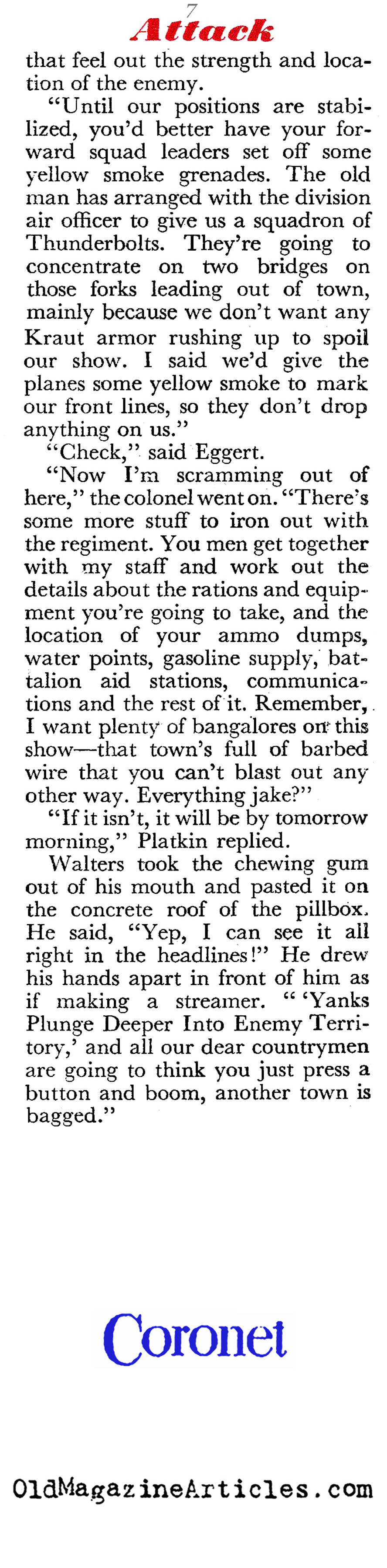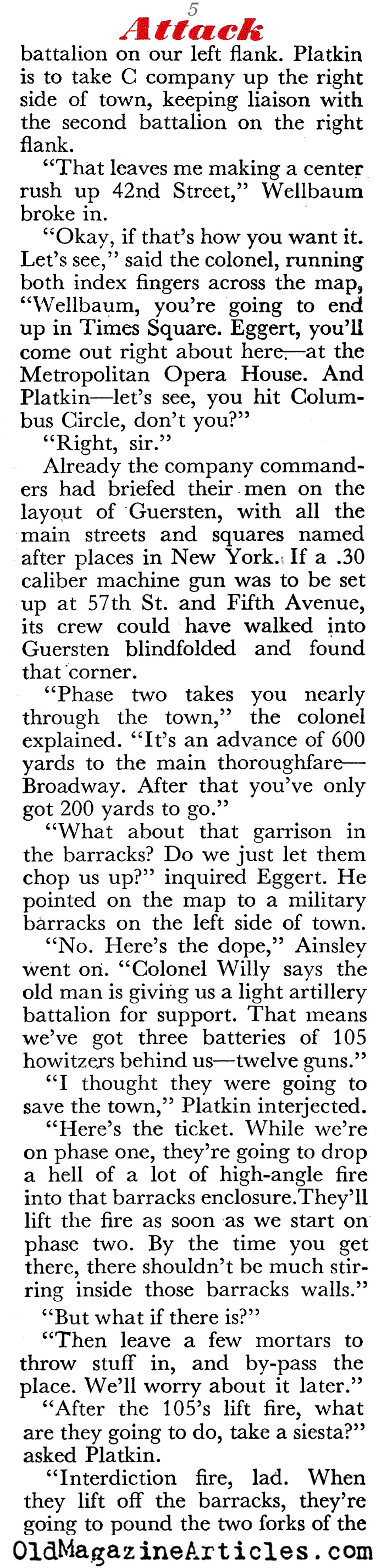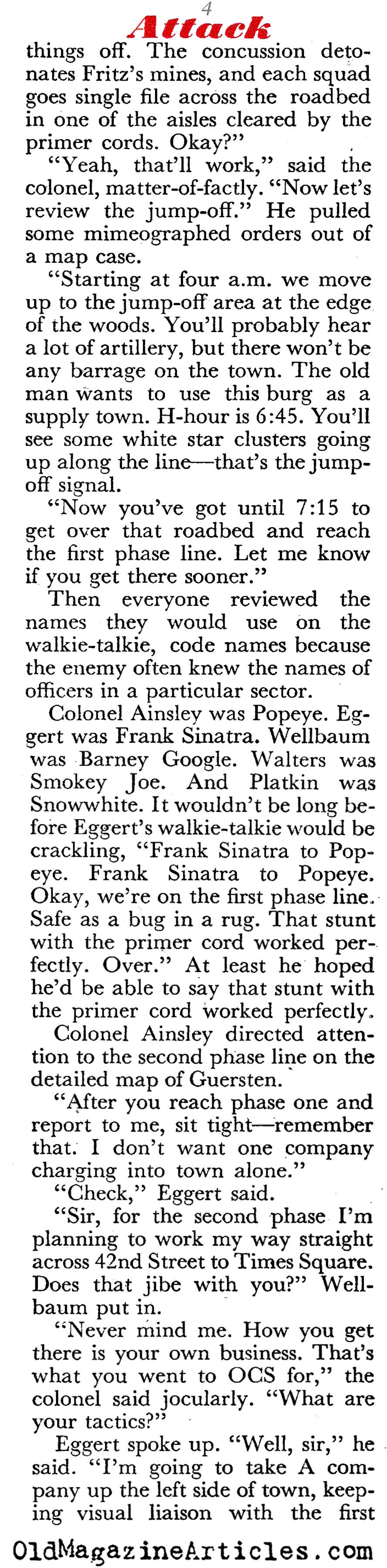 Here is an interesting article from World War Two that goes into some detail explaining what is involved when a lieutenant colonel in an infantry regiment presents his plan of attack on a German town that is heavily defended. We hear him as he addresses the junior officers who will do the heavy lifting, and we get a sense of their concerns. Few reporters have ever paid any attention to this aspect of an assault.
