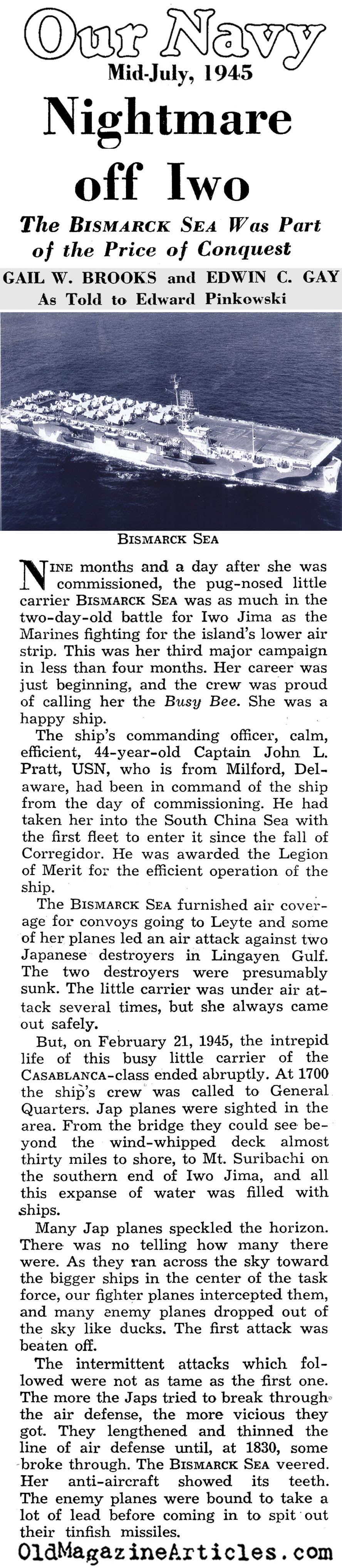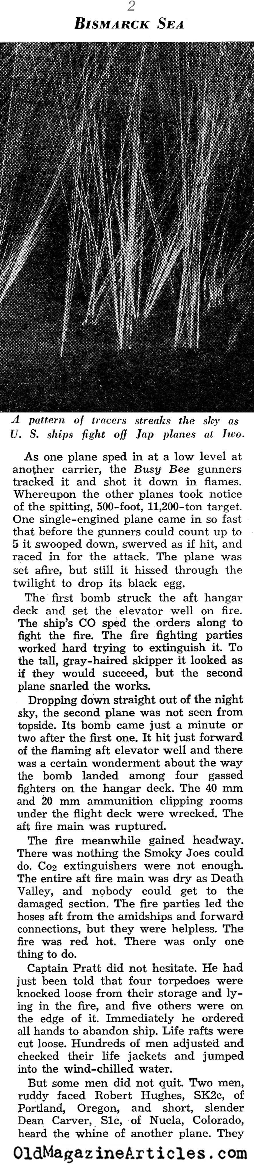 KEY WORDS: Captain John L Pratt USN ordered abandon ship of Bismark Sea 1945,Robert Hughes Bismark Sea 1945,Dean Carver Bismark Sea 1945,