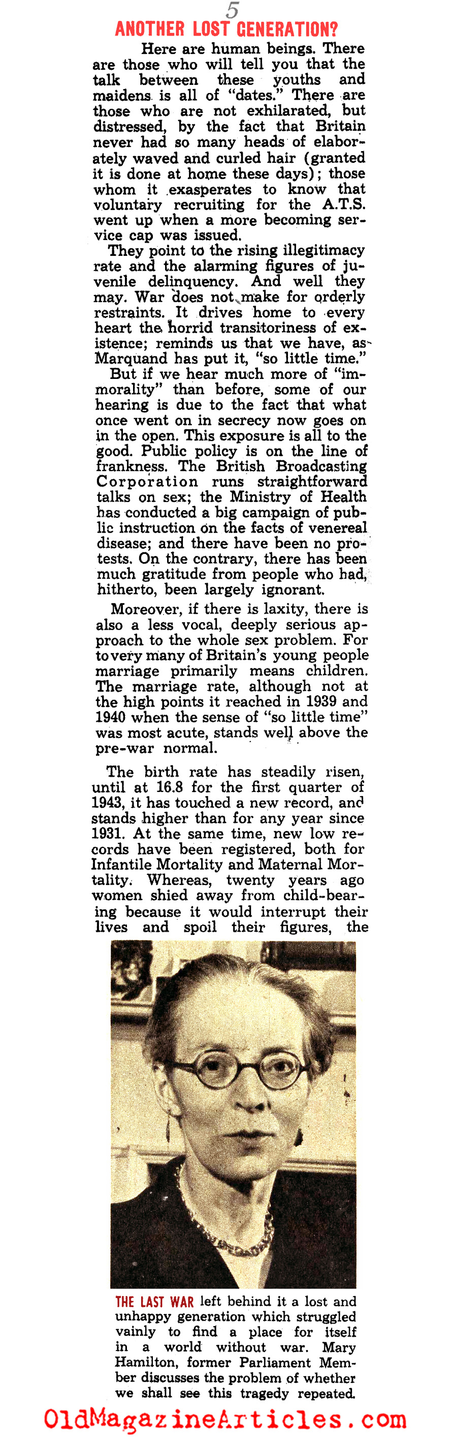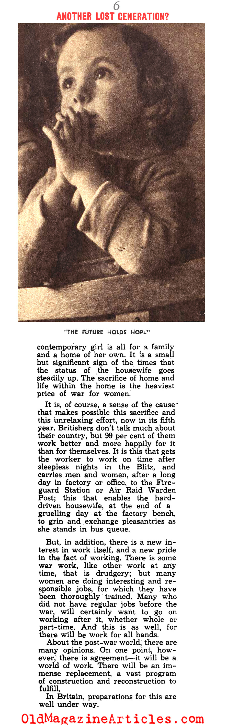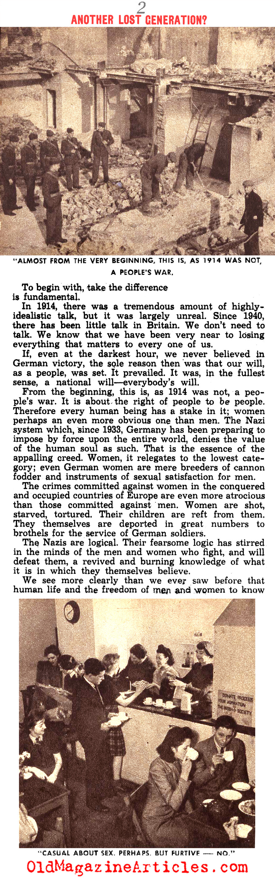 “For the second time in a generation the world is plunged into catastrophe. It is possible to compare now with then. Now looks like then because, once more, Germany has brought this frightfulness upon the world. But now is not then. Now need not see the Lost Generation that then endured. In Britain, anyhow, we are quite sure that this time our young people are to find, not lose, themselves.”