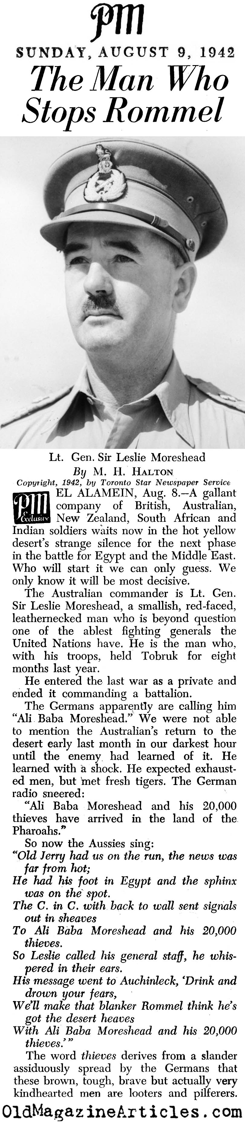 North Africa Lt. General Leslie Moreshead • PM Tabloid, 1942 • – from Amazon: KEY WORDS: Lt General Sir Leslie Moreshead in North Africa 1941,British north african commander Lt General Sir Leslie Moreshead,