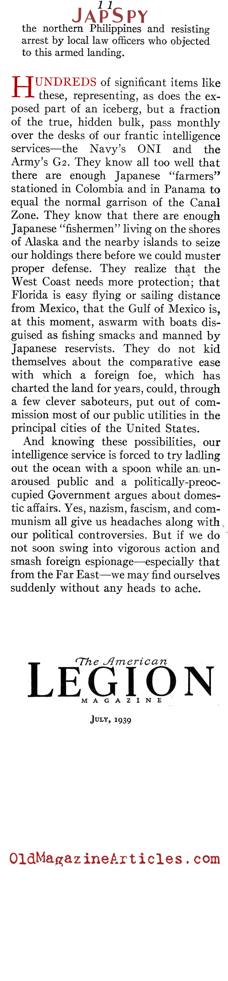 Read The Japanese Spy Problem (American Legion Magazine, 1939) for Free