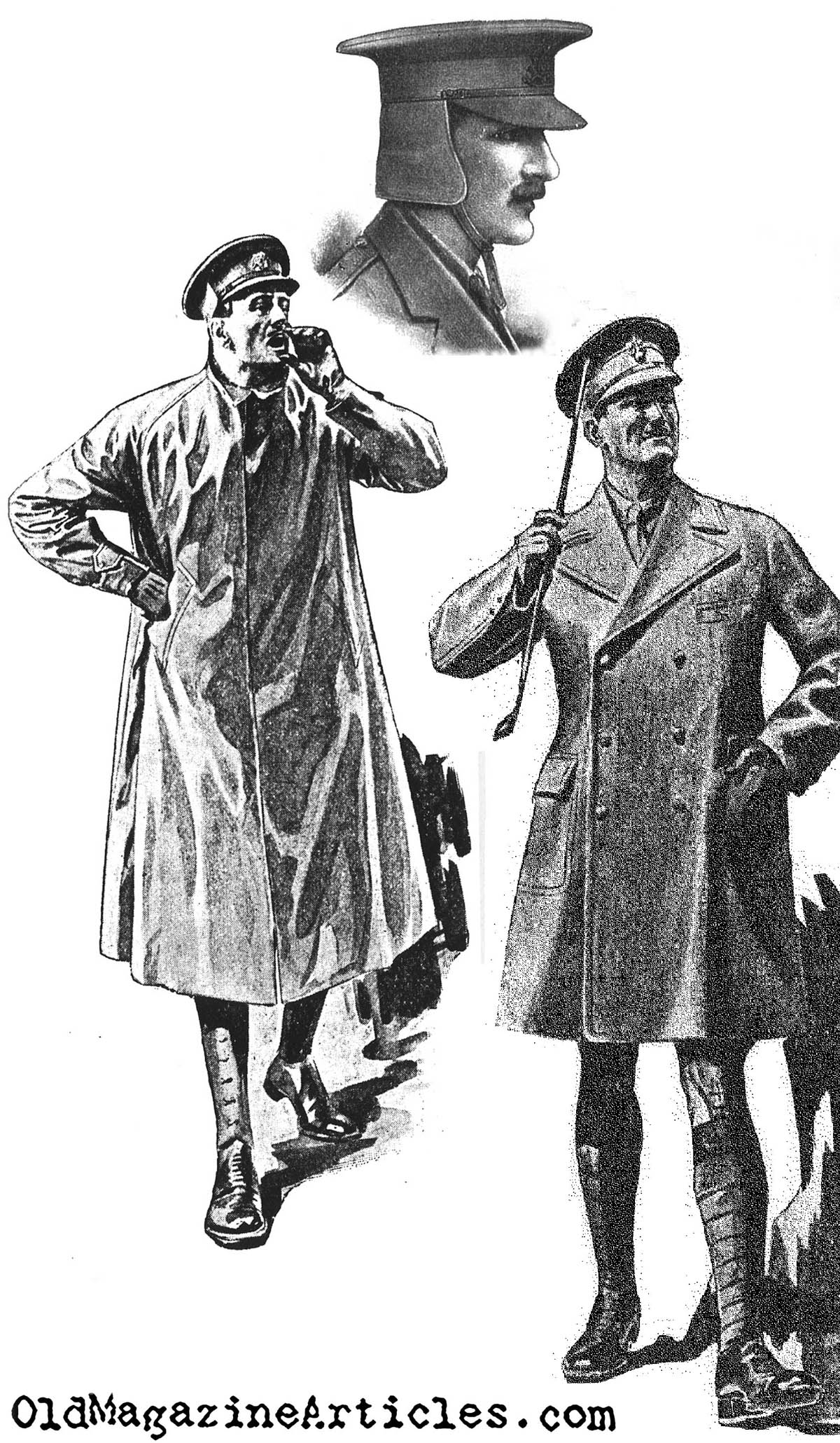 Attached herein are three commercial drawings depicting World War One British officers. The images were pulled from three different wartime magazines.